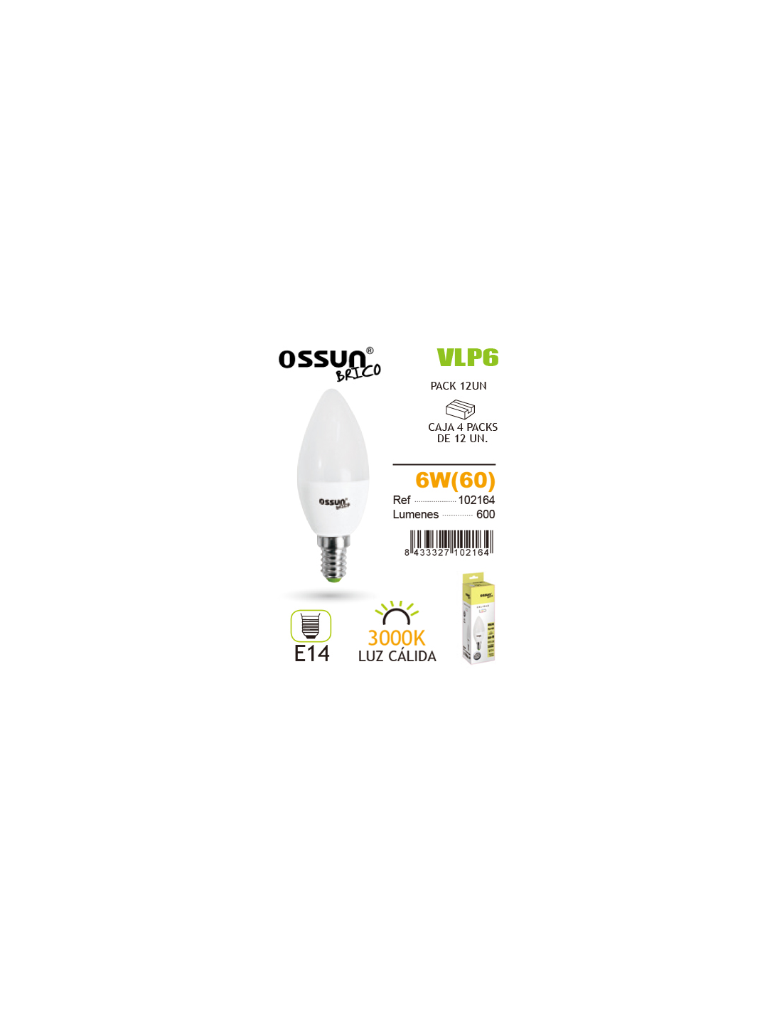 LAMPARA LED OSSUN VELA 6W E14 CALIDA