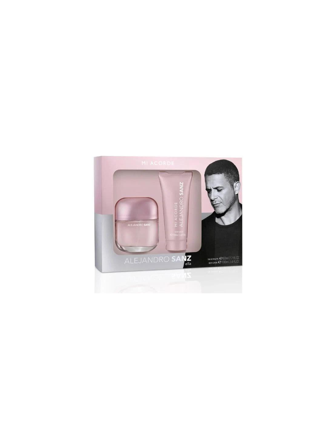 Este estuche contiene: Alejandro Sanz Mi Acorde Women Eau de Toilette 80 ml Body Milk 100 ml.