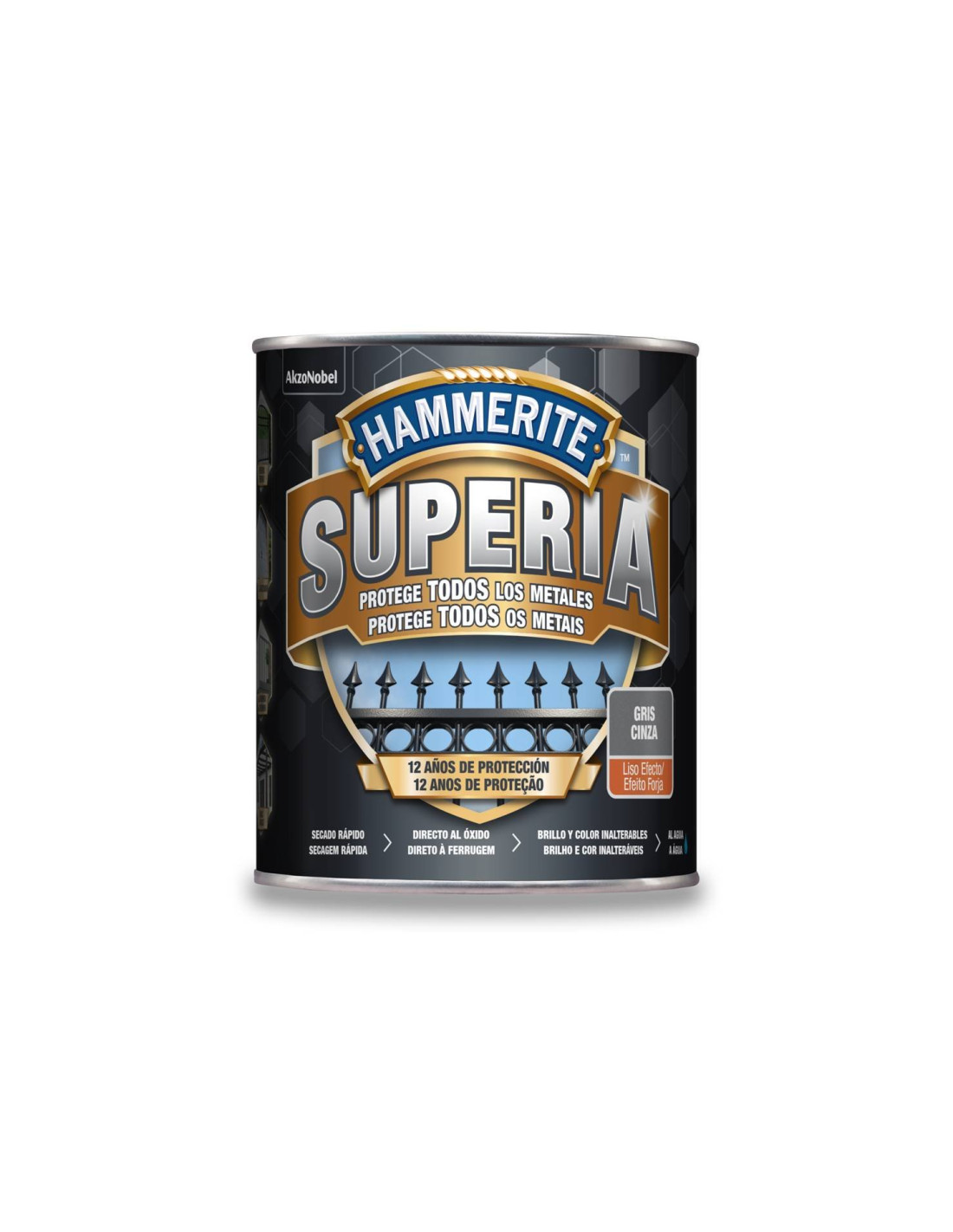 Hammerite Superia® é a nova geração de esmalte antioxidante à base de água, formulado para ser aplicado diretamente na ferrugem e diretamente em qualquer metal sem primer, proporciona um acabamento decorativo duradouro de até 12 anos de proteção. Hammerite Superia®, acabamento em ferro forjado, confere um aspecto de ferro forjado a grades, grades, portões e todos os objetos feitos de qualquer tipo de metal, principalmente ao ar livre. Proteção avançada contra corrosão. Até 12 anos. Prote