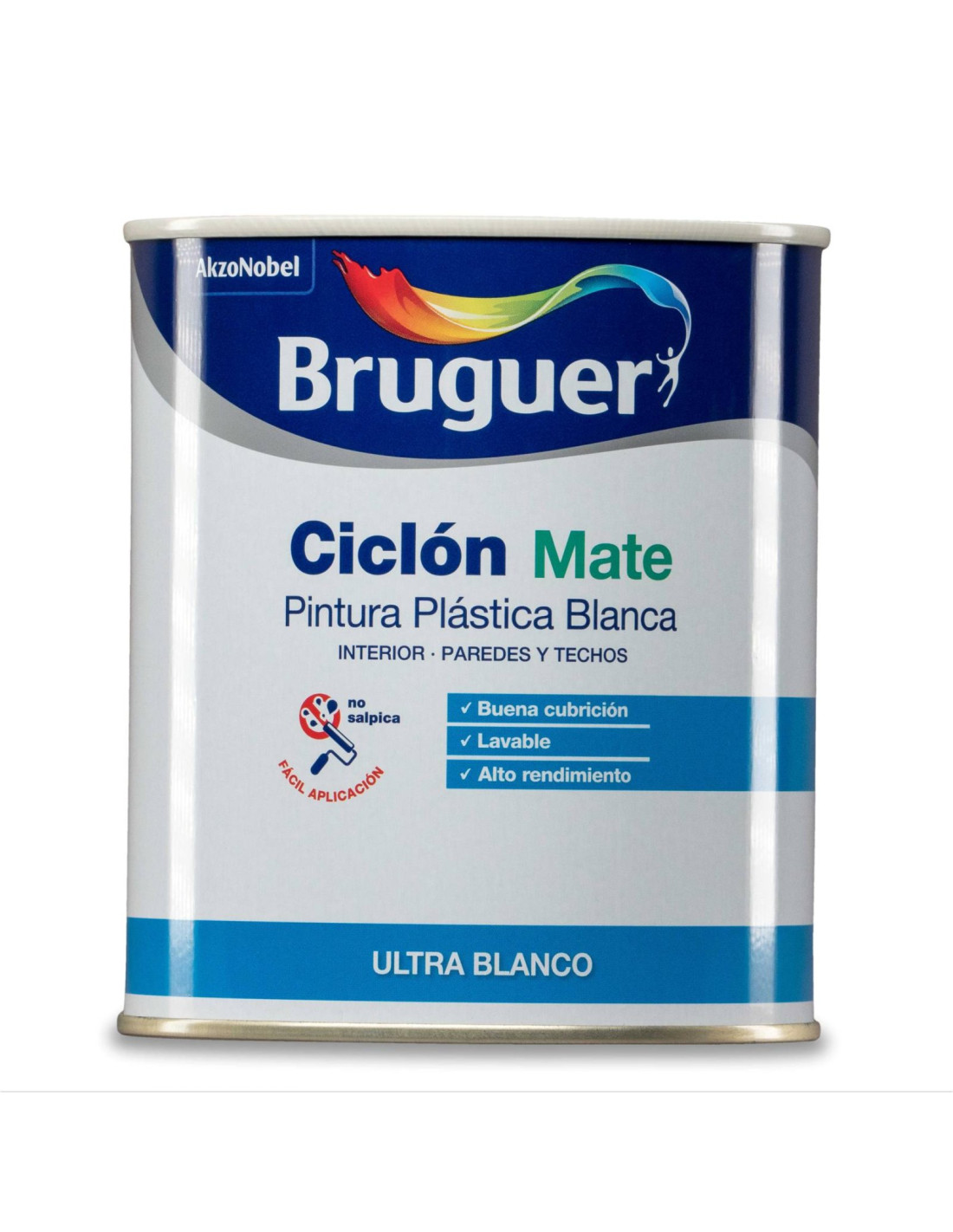 Ciclone fosco, tinta plástica. Para interiores, especialmente paredes e tetos. À base de emulsão acrílica de estireno. Alta performance. Lavável.
